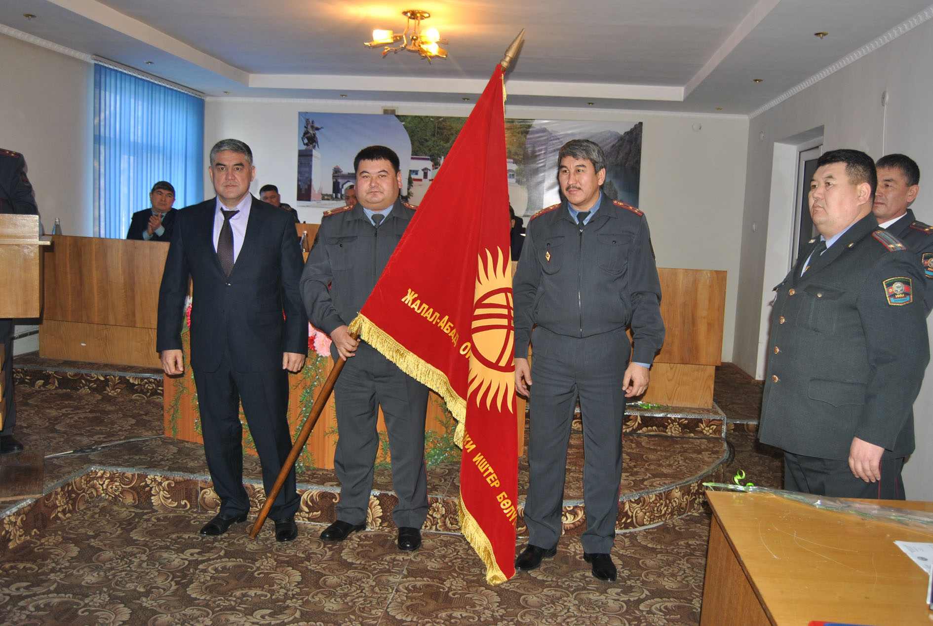 Ага ИИМдин орун басары милицияныын генерал майору К.Асанов, Жалал-Абад ОИИБнын жетекчилик курамы, бөлүм башчылары, шаар райондук ички иштер бөлүмдөрүнүн жетекчилери жана орун басарлары, областын күч түзүмдөрүнүн жана өкмөттүн жергиликтүү ыйгарым өкүлүнүн орун басарынын катышуусунда өттү. Бул тууралуу башкарамлыктын басма сөз кызматы билдирди.
