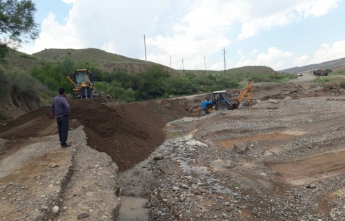 КР ӨКМнин 2017-жылга карата түзүлгөн “Атайын алдын алуу жана кесепеттерин жоюу” иш планы боюнча Ала-Бука районунун 1-Май айыл аймагынын Ажек айылындагы Эшме-Сай сел сайынын эң кооптуу участкасын механикалык жол менен сүрүп бекемдөө жумуштары жүргүзүлүүдө.