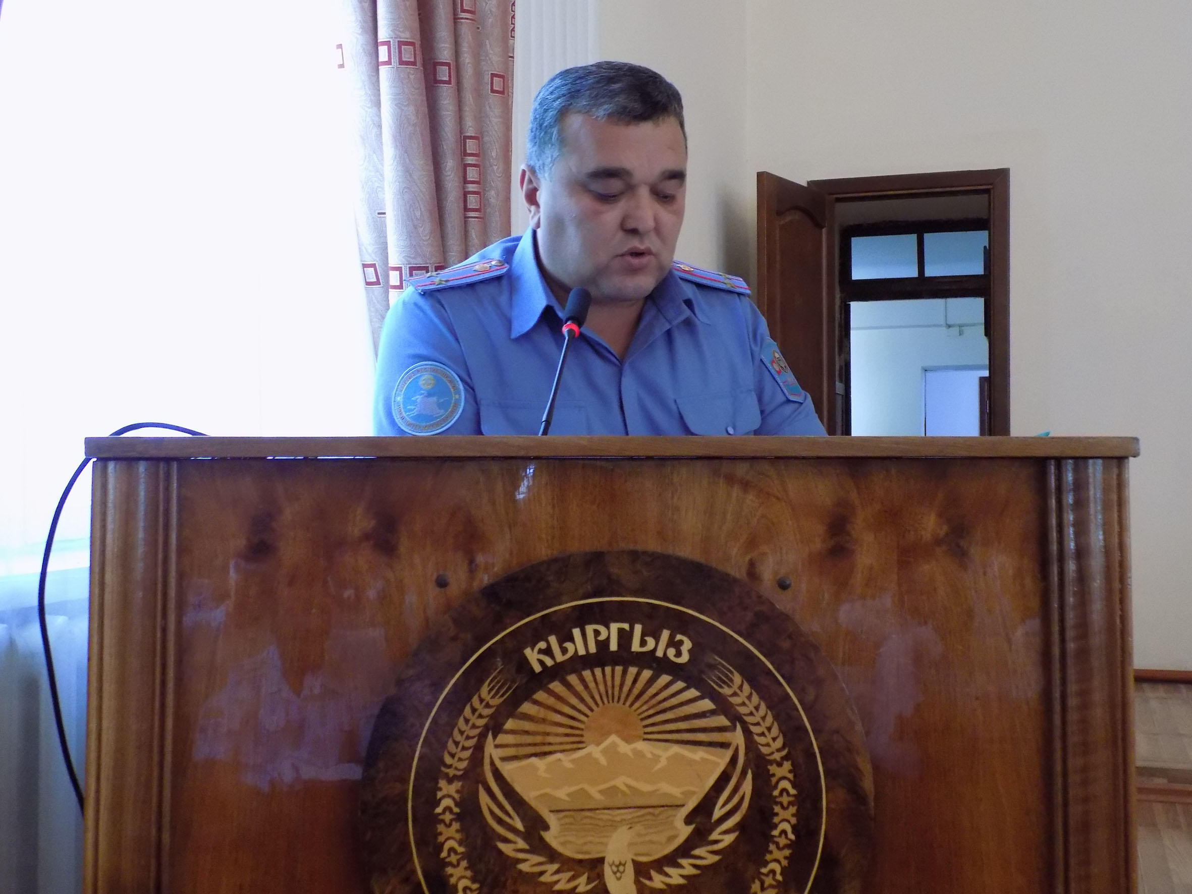 Ал эми Жалал-Абад облустук ИИБнын жетекчисинин орун басары Маматазиз Хажиматов жол транспорт кырсыктарынын алдын алууда жана кылмыштуулук менен күрөшүүдө ички иштер органдарынын жүргүзүп жаткан иш аракеттери баяндама жасады.
