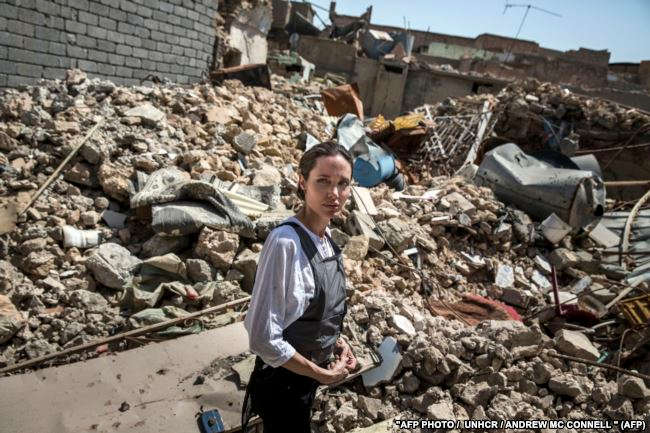 Анжелина Жоли Мосул шаарындагы урандылар арасында