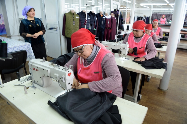 Мамлекет башчы Жалал-Абад шаарындагы экспортко багытталган тигүү фабрикасынын ишмердүүлүгү менен таанышты (ФОТО)