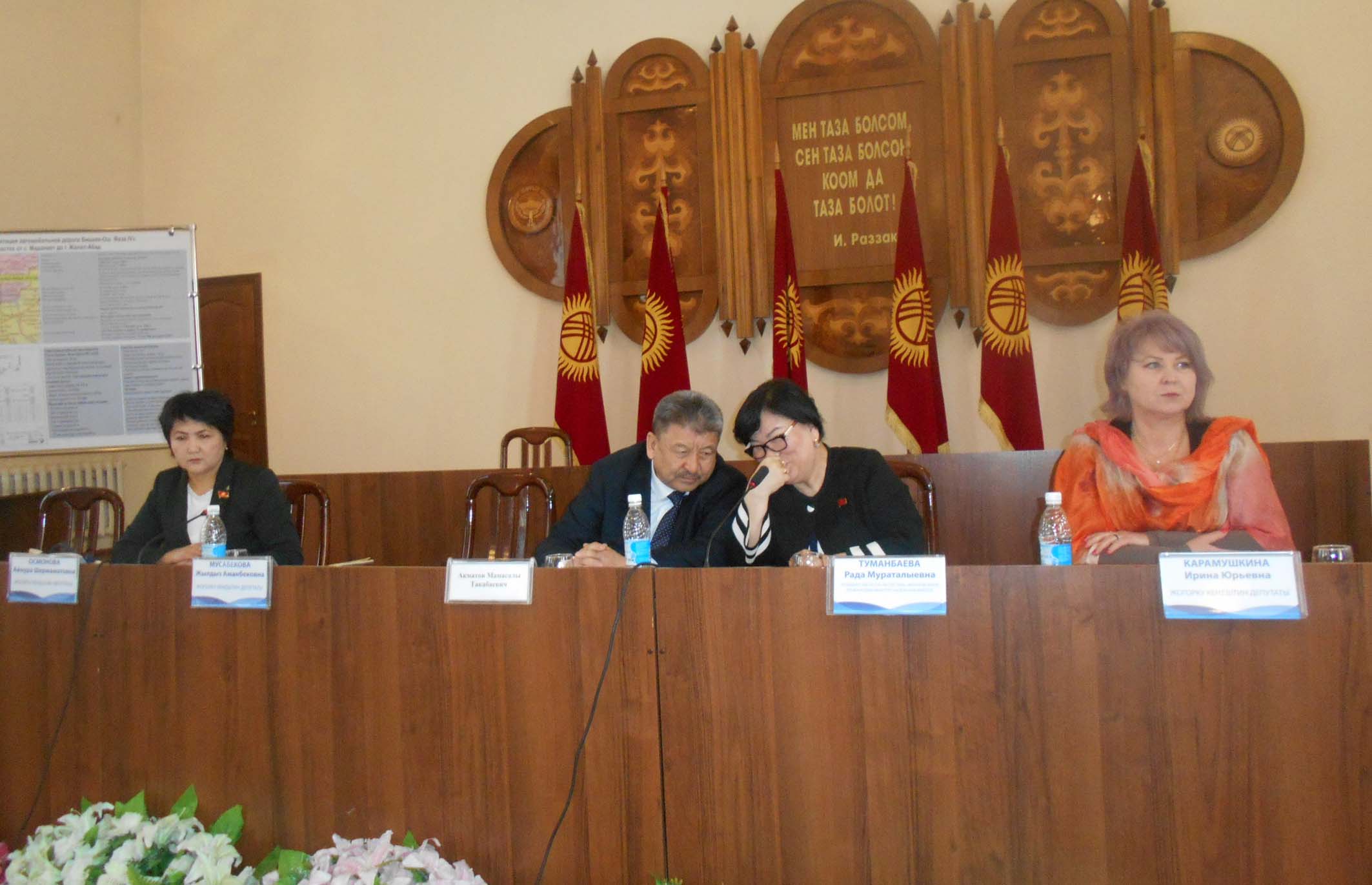 Анда Жогорку Кеңештин айым депутаттарынын форумунун көчмө жыйыны болуп өттү. Аталган жыйынга ЖК депутаттары: Рада Туманбаева, Ирина Карамушкина, Айнура Осмонова, Жылдыз Мусабекова жана жергиликтүү активист аялдар катышты. Көчмө жыйында “Үй-бүлөдөгү зомбулуктан коргоо жана сактоо” жана “Кыздарды ала качуунун жазасын күчөтүү” боюнча мыйзамдардын аткарылышы, саясатта аялдардын ээлеген оорду боюнча маселелер талкууланды.