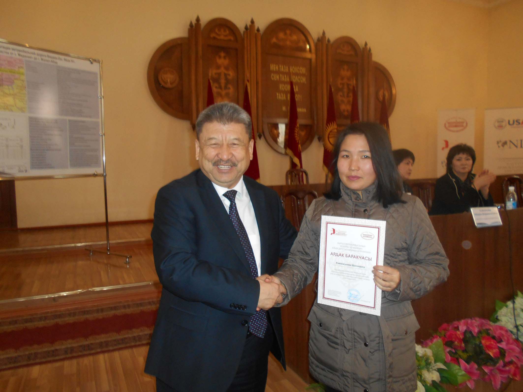 Акырында, Жогорку Кеңештин айым депутаттарынын форуму тарабынан Жаалал-Аад облусунун аймагындагы активист аялдарга “Аялдардын гендердик теңдигин жана мүмкүнчүлүктөрүн камсыз кылуу максатында саясий катышуусун өнүктүрүүгө кошкон салымы үчүн” – деген Ардак баракчалар тапшырылды.