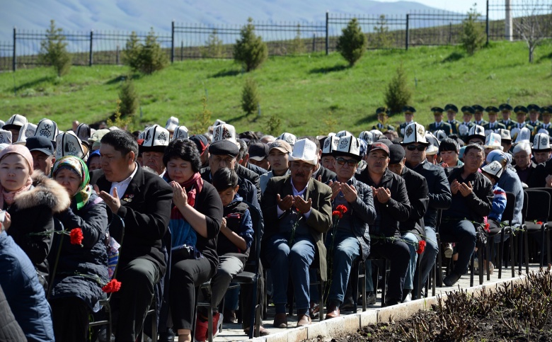 Мамлекет башчысы «Ата-Бейит» мемориалдык комплексинде 2010-жылы Апрель окуяларында курман болгондорду эскерүү монументине гүл койду. Чогулгандар бир мүнөт үн катпай турушуп, курман болгондордун элесине арналып куран окулду.