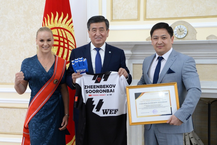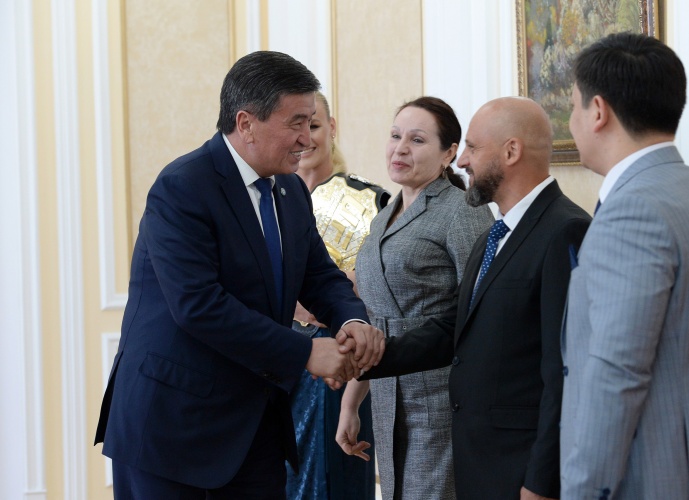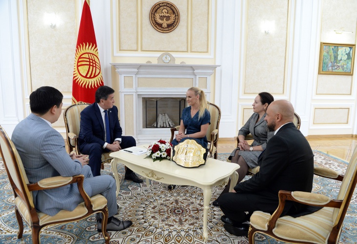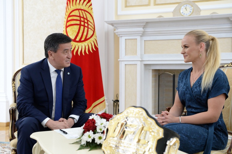 Кыргыз Республикасынын Президенти Сооронбай Жээнбеков бүгүн, 8-апрелде, UFC версиясынын аралаш күрөшүү боюнча дүйнө чемпиону Валентина Шевченко менен жолугушту.