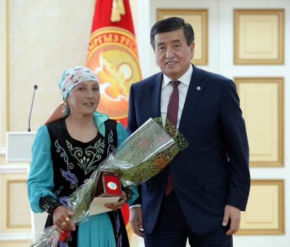 Президент Сооронбай Жээнбеков Энелер күнүнө карата көп балалуу энелерге мамлекеттик сыйлыктарды тапшырды (ФОТО)