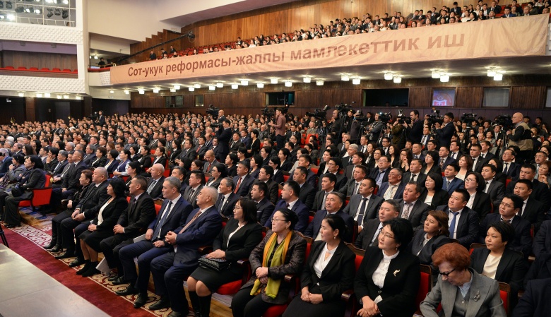 «Биз мыйзамды мыкты билген, анын үстөмдүгүн сактаган, акыйкат иш алып барган, көз карандысыздык менен жоопкерчиликти айкалыштыра билген судьялардын корпусун түзүүгө умтулуп жатабыз. Мунун натыйжасында, өздөрүнүн калыстыгы менен коомубузда бийик кадыр-баркка, кынтыксыз ишенимге ээ болгон судьялардын курамы өсүп чыгат», — деп жыйынтыктады Мамлекет башчысы.